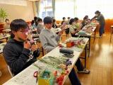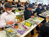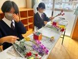 2月15日。中学部が、技術家庭の授業の中で、花育を行いました。