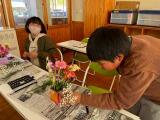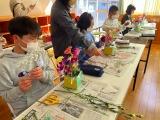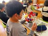 岡田花店から来られた講師の先生の話をよ~く聞きながら、花と悪戦苦闘する子どもたち。