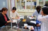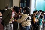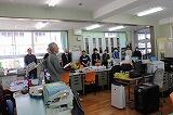 職員室の外が賑やかだな・・・と思ったら、6年生が家庭科で手洗いの実習をしていました。