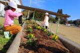技術員さんが受け取りに行ってくださり、1年生がその花を植えてくれました。