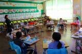 次に、ストローと小さなボールを使った的あてゲームです。数を数えたり、色を復唱したり、お礼を言ったりとゲームを通して楽しみながら、いろいろなことを繰り返し行っていました。笑顔あふれる1時間は、あっという間に過ぎていき、最後は、授業の感想と次に頑張ることの発表をして終了。2人の堂々と発表する姿に感動を覚えました。今年度は、4回の来校でご指導していただきました。中学部でも大きく成長してくれることと思います。