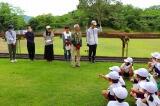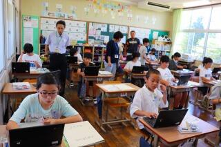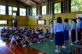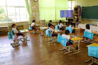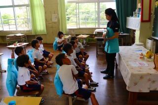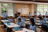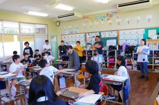 みんなで万歳三唱をして送り出しました。先生方は玄関だけでは寂しすぎて・・・。結局、駐車場までお見送りをしました。授業では子どもたちを温かく包んでくださり、暑い昼休みも汗をかきながら子どもたちと鬼ごっこ等をして遊んでくださいました。