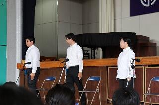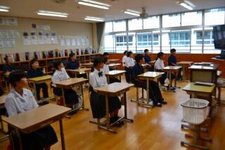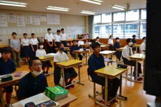 この授業を終えて、中学部3年生の皆が講師の先生にお礼を述べる姿。一段と凜と輝いて見えるのは私だけではないでしょう・・・。