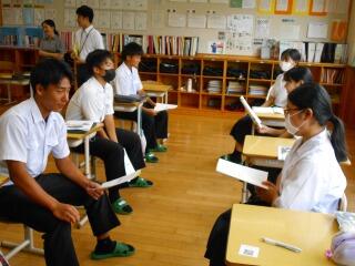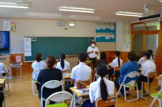 7月26日。宮崎のハローワークの方をお招きして、中学3年生の就職ガイダンスが行われました。