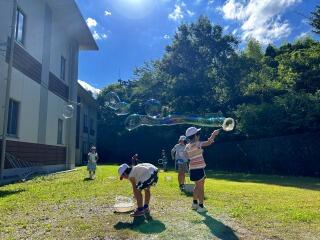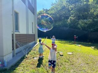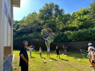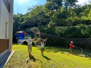 今日も子どもたち(職員!?)の要望に応えていただいき、シャボン玉体験をさせていただきました。