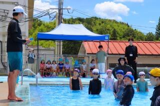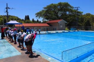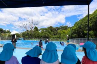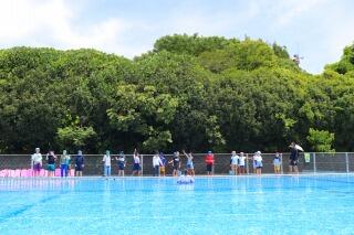 最後は、プールにお礼を言って納会も行いました。事故に遭わず元気に楽しい夏休みにしてほしものです。