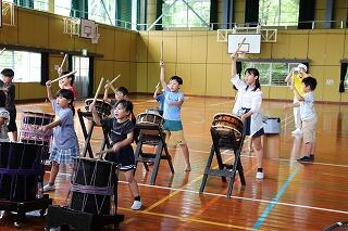 放課後子ども教室では、今年も和太鼓教室が行われました。