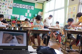 タブレットを見たり、先生方に教えていただいたりしながら、玉留め、玉結びが出来るようになった5年生です。