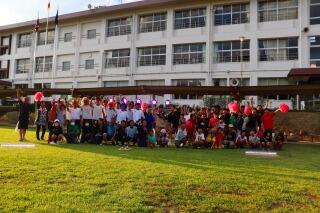 このタイムカプセルは、20歳の記念に掘り起こすそうです。最後に将来の自分への手紙と思い出の品を入れた袋をもって記念撮影です。卒業の日まで一つ一つ大事な思い出を積み重ねながら卒業の日を迎えます。