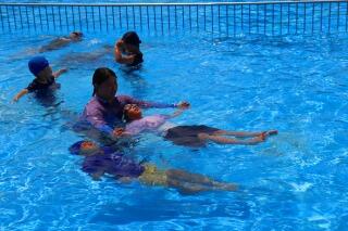 いつものように水慣れをしましたが、思うように動けない様子の子どもたち・・・。