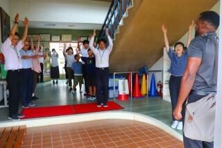 出演が決まってから、時間のある昼休みは、暑くても、毎日のように校長先生が並走してくださり練習に励んできました。