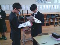 中学1年英語の授業では、教科書の対話文を使ってペア活動を行いました友だちと向かい合い、発音や表現を確かめ合いながら、楽しそうに英語でやり取りする姿が見られました。互いに教え合いながら、伝える力を少しずつ伸ばしています