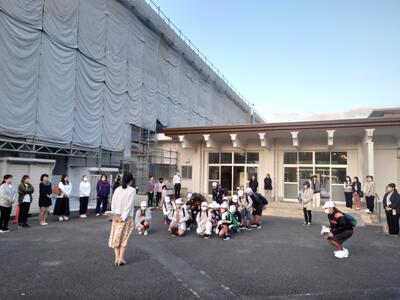 ワイワイがやがや・・・。みんなでお散歩が始まりました。その後は、『だるまさんが転んだ』を始め、いつの間にか、同じクラスのように混ざり合っており・・・。心が温かくなった交流学習でした。これからも、相手の立場に立って寄り添える優しい子どもたちであってほしいと願います。