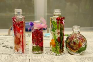 完成したあと、くじの番号順にハーバリウムの先生の作品を2つずついただきました。