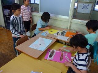 昨日、いおいもが焼ける間に、2年生が1年生を『虫ランド』に招待していました。