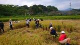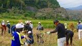 JAの方々に鎌の使い方を教えて頂き、子供たち29人で刈っていきました。