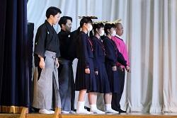 児童生徒は、11月27日(水)に鑑賞教室を十分に楽しむためのワークショップの中で、能や狂言の歴史、すり足体験などを行っていました。
