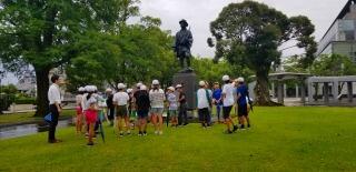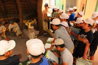 先日、小学部の遠足がありました。6年生は、バスを借りて宮崎市の『宮崎県総合博物館』へ!社会科で学んでいる日本の歴史について、実際に道具や模型等を見ながら学ぶことができ、子どもたちも嬉しそうでした。お昼は雨が降っていたので、博物館の広い軒下でお弁当を食べました。前日に家庭科で卵焼きづくりをしたので、たくさんの子どもたちが自分でおいしそうな卵焼きを作ってきていました。午後は、文化公園にて宮崎県の偉人についての学習でした。若山牧水と安井息軒の功績を学び、宮崎が生んだ偉人について知ることができました。23名全員で楽しむことができた1日でした。