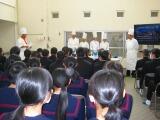 谷本先生のわかりやすい話と、調理科の生徒さんの手際のよいフライパンさばきに本校の生徒は釘付けでした。特に、フランベ(炒めている中にお酒を加えること)したときに炎が立ち上がったときはわーっと歓声が思わずあがっていました。