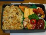 あっという間にだしまきやサーモンのソテー、てりやきチキンなどのおかずができあがり、きれいに弁当箱の中に盛りつけておいしそうなお弁当が完成!