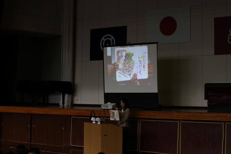 お昼の校内放送で、南方小学校の栄養教諭の樋口則子先生監修による『給食一口メモ』が紹介されます。