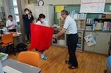 一部の職員以外は、「何時間目に、どこに入ってくるのか知らない」という形での訓練でした。突然のこどだったにも関わらず、みんな冷静に行動することができていました。