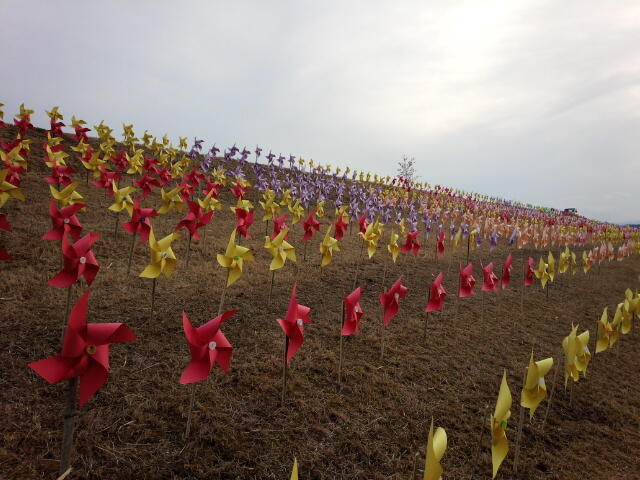 本校の中学部全員で作った風車が、会場を彩りました