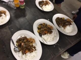 その後は、歩いてむかばき青少年自然の家に向かい、現地でカレーを作って食べました。