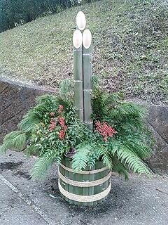 PTA副会長の甲斐さんに持ってきていただいた松やウラジロ、学校にある南天、竹も使って、26日(月)に門松を作りました。今回は5名の職員で以前作られた写真をもとに気持ちを込めて作りました。出来映えは見ての通りですが、気持ちよく新年を迎える準備ができました。今年1年、保護者、地域の皆様に多大なるご協力をいただいたおかげで、充実した教育活動ができました。心から感謝申し上げます。来年もよろしくお願いいたします。皆様、どうぞ、よいお年をお迎えください。