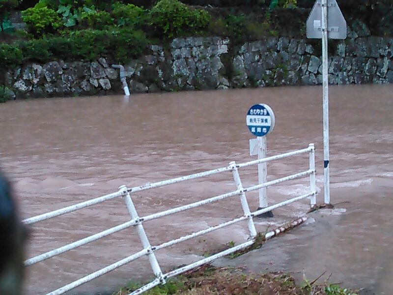千葉橋のところ等、冠水しているため、昼食をとって13時登校になりました。十分注意して登校してください。なお、登校困難な場合は無理して登校しないでください。なお下校時刻は小学校低学年が14時15分、小3以上、中学校が15時10分になります。