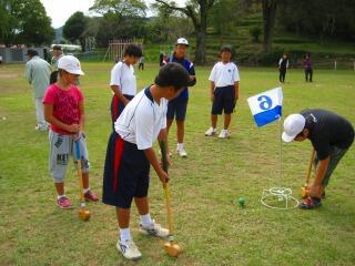 10月15日(土)に、土曜授業を利用してふれあいグラウンドゴルフ大会が行われました。