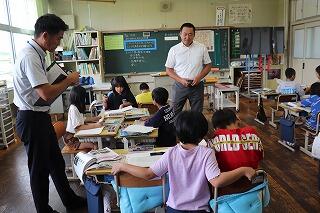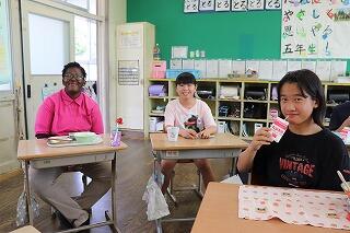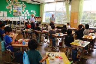 この日は、5年生の教室で給食を食べていただきました。メニューは、焼き鳥丼でした。