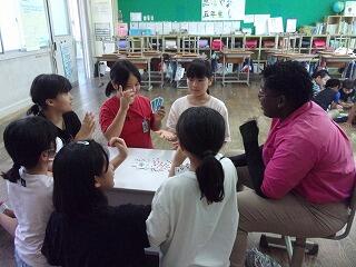 イントネーションまで伝授して、鹿児島人になりきったみんなです。このカードは、担任の先生の手作りで、正解したみんなにプレゼント