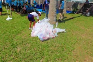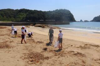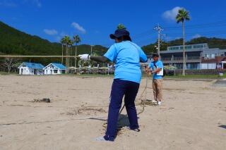 網の片付けのあとは、ビーチクリーンです。たくさんのゴミにビックリ!!