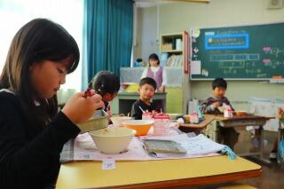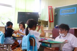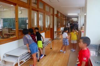 海苔巻きにして食べる子や、ふりかけを2人分かけて食べる子、友達の分まで水を準備する子・・・。