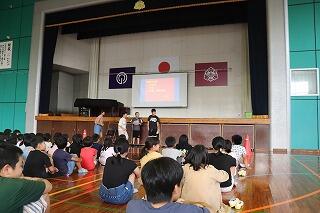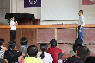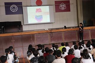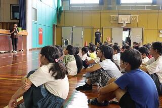 5日(木)、宮崎県警本部生活安全少年課の方がお見えになり、1・2年生に非行防止教室をしてくださいました。