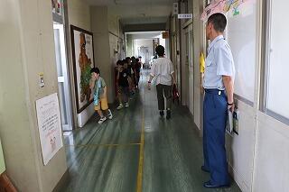 保護者の方々は各地区で子どもたちを送り出してくださり、校門下には、駐在所の方が見守ってくださっていました。