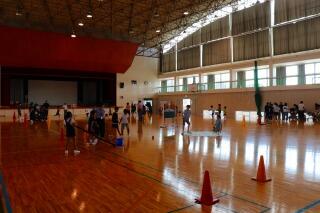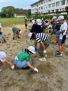 そこで、清掃時間を活用して、中学部は体育館周辺を、小学部は運動場をみんなで片付けました。