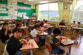 「お、もうお代わり?」という子も・・・。朝食の時間も個性豊かな6年生です。