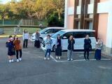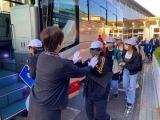 退館式を済ませ、スパホテルらららをあとにしました。従業員の皆さんがずっと手を振ってくださいました。