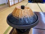 桜島を模したお鍋は、『桜島が噴火してから食べてください!!」と注意あり!!