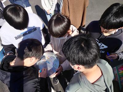 令和6年2月18日。保護者の方々の温かい眼差しを背中に感じながら寄せ書きをしたり、穴を掘ったり・・・。