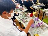 2月27日。中学部に引き続き、小学部6年生が花育のプロジェクトに取り組みました。