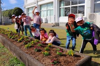 技術員さんが受け取りに行ってくださり、1年生がその花を植えてくれました。