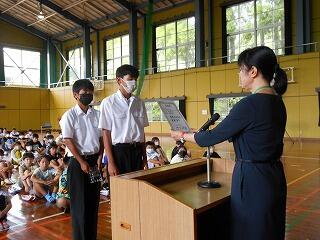 この日はプール納会ということもあって、できるようになったこと、これから頑張りたいことの感想を代表の子どもが発表して授業を終えました。とても堂々とした立派な発表でした。