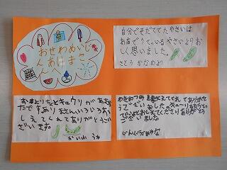 「がんばりかあど」に、元気な体を作るために、これからどんなことに気をつけて食事をしたいか、自分で決めたことを書いていきました。