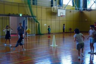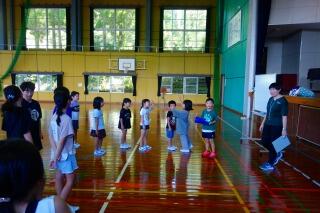 体ほぐしの運動では、本日のねらいである前転、後転につなげるための動きを確認しました。