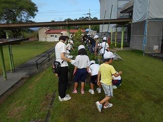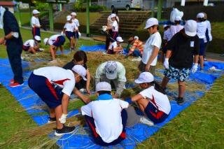 10月11日(火)5・6時間目に5年生がかかしの設置に実習田に向かいました。