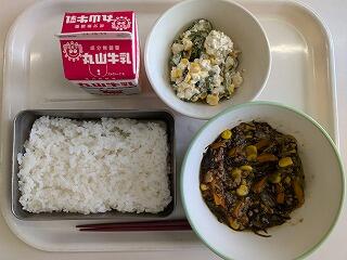 今日は、甘辛豚丼をいただきました。辛みはあまりなく、低学年の子たちも食べやすい味付けでした。