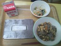 本日の給食献立は、五目豆とささみともやしの和え物です。五目豆は豆のやさしい甘みと、にんじんやこんにゃくの彩りが食欲をそそります。ささみともやしの和え物は、シャキシャキとしたもやしと、やわらかいささみの食感が絶妙であっさりとした味わいがとっても美味しかったです
